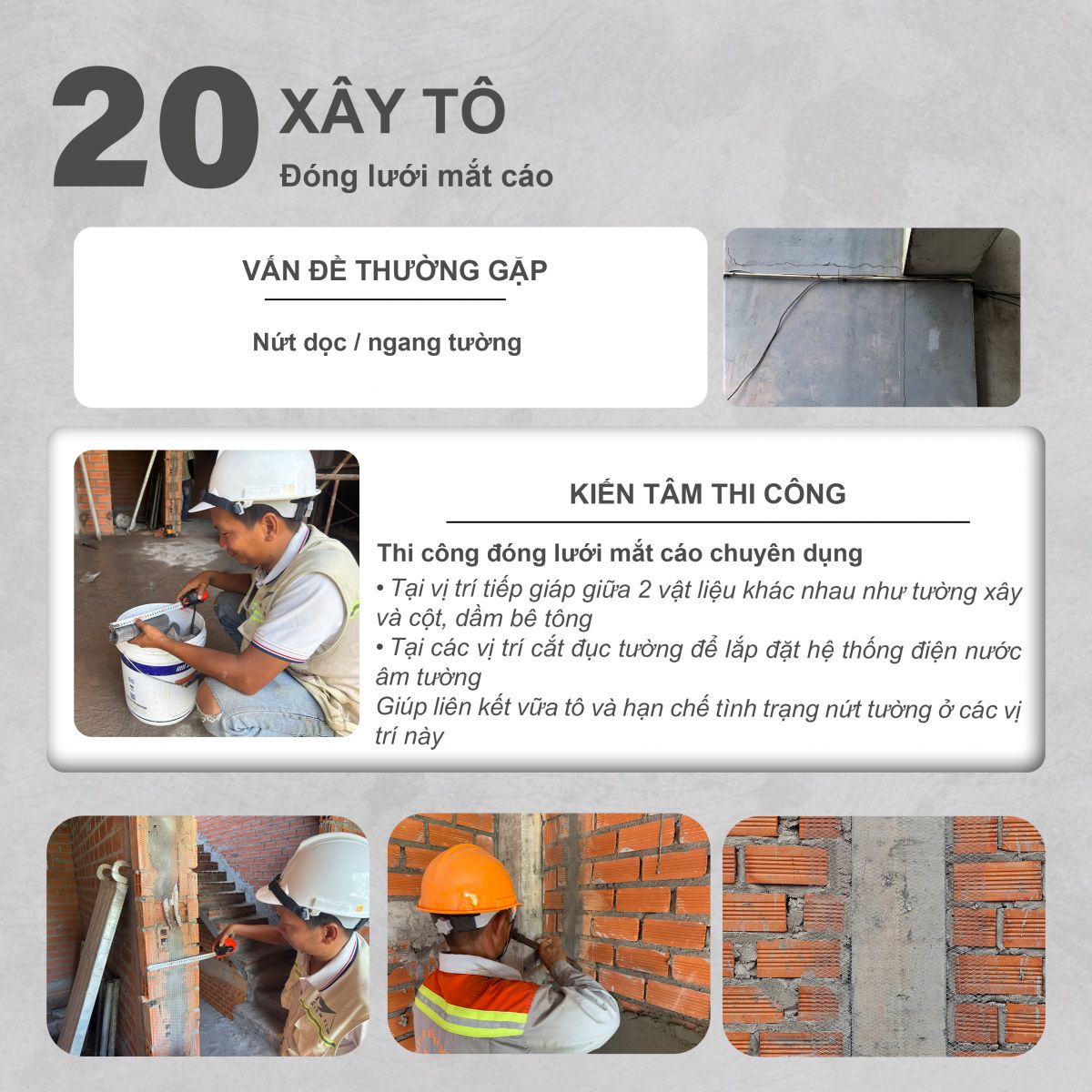 Xây tô: Sắt râu – gờ chân tường – lưới mắt cáo – bổ trụ – nghiệm thu