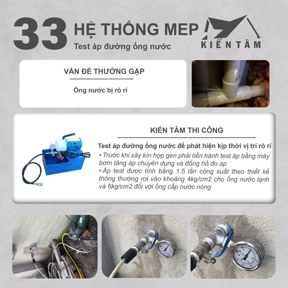 MEP (điện nước): Ống cứng trắng – bẫy chống hôi – test áp lực – treo ty ống